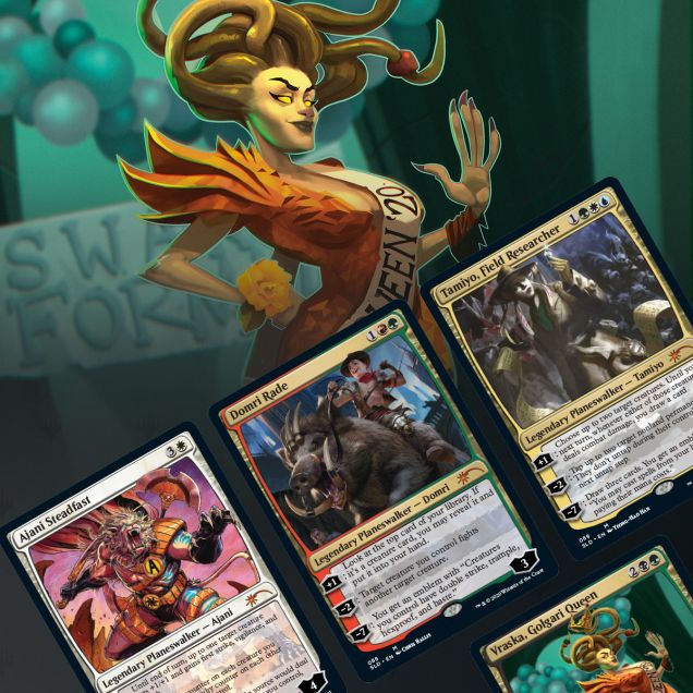 Being a Planeswalker comes with heavy responsibilities. What would happen if our Planeswalkers decided to pack things up and do something else with their lives—or had never sparked at all? This drop explores alternate fates for Ajani, Domri, Tamiyo, and Vraska. We’ve entrusted their lives to the steady hands of Yeong-Hao Han, Chris Rallis, David Rapoza, and Mike Uziel. Maybe in yet another universe, these Planeswalkers are collecting cards of you!